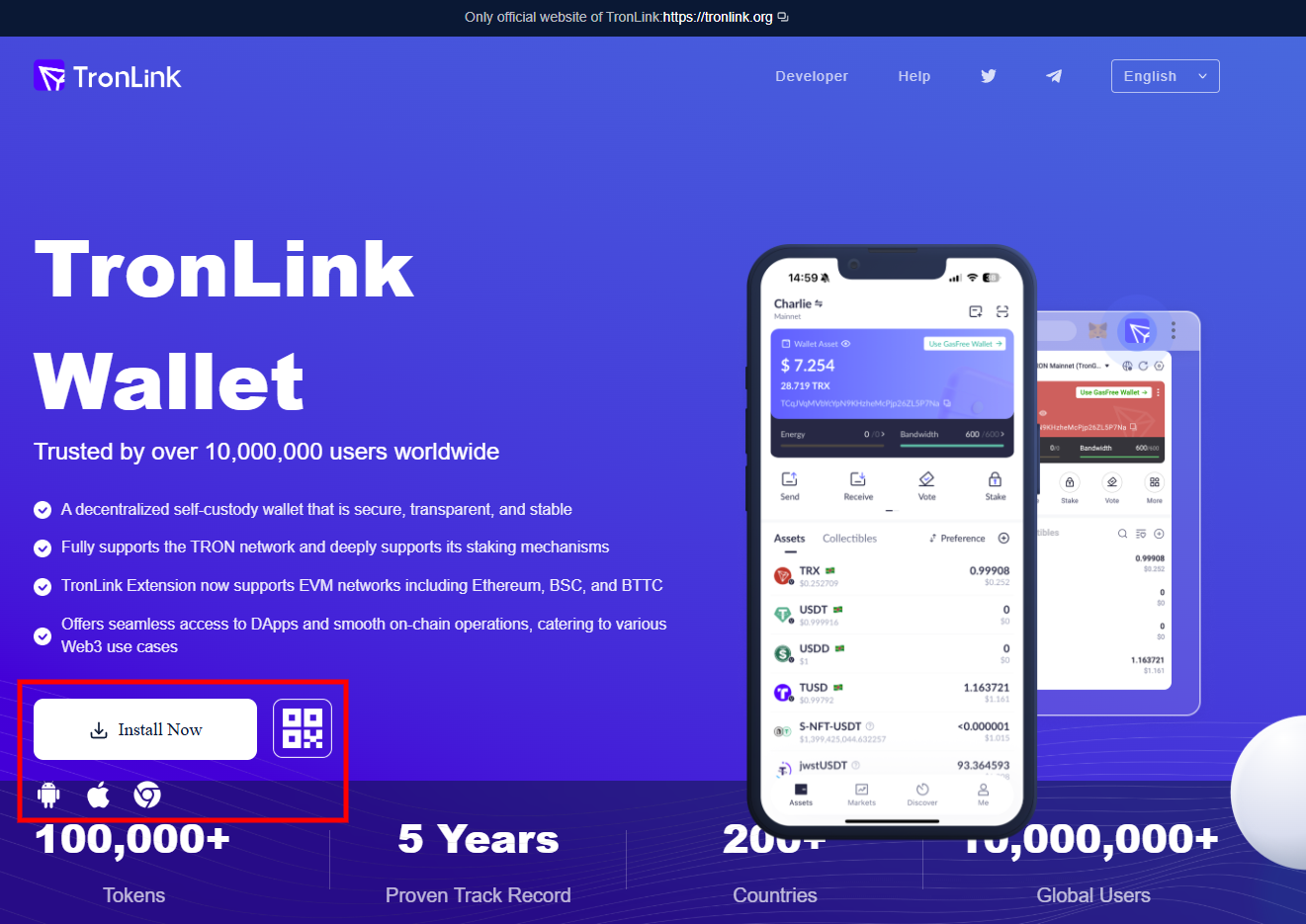 TronLink доступен в виде браузерного расширения, приложений на iOS и Android. Для безопасности используйте официальный сайт при скачивании приложений на мобильные устройства.