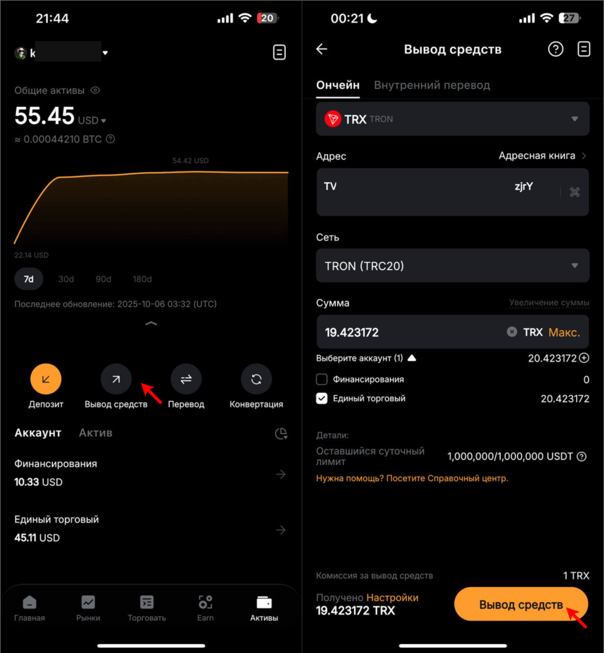 На бирже откройте форму вывода, вставьте адрес, начинающийся на «T», и выберите сеть TRON (TRC-20). Введите необходимую сумму и уточните комиссию операции. После отправки проверьте статус операции и поступление средств в кошельке.