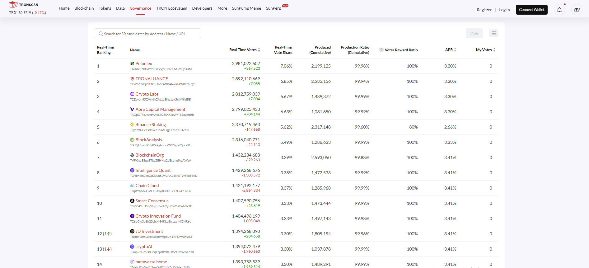 - Прямой ончейн-стейкинг Tron: Если самостоятельно замораживать TRX в собственном кошельке и голосовать за суперпредставителей, можно рассчитывать примерно на 3-3,5% годовых, а в некоторых случаях и больше. Это базовая награда сети Tron за поддержку за участие в работе и поддержании сети Tron. Преимущество – полная независимость и простота, недостаток – низкая доходность.