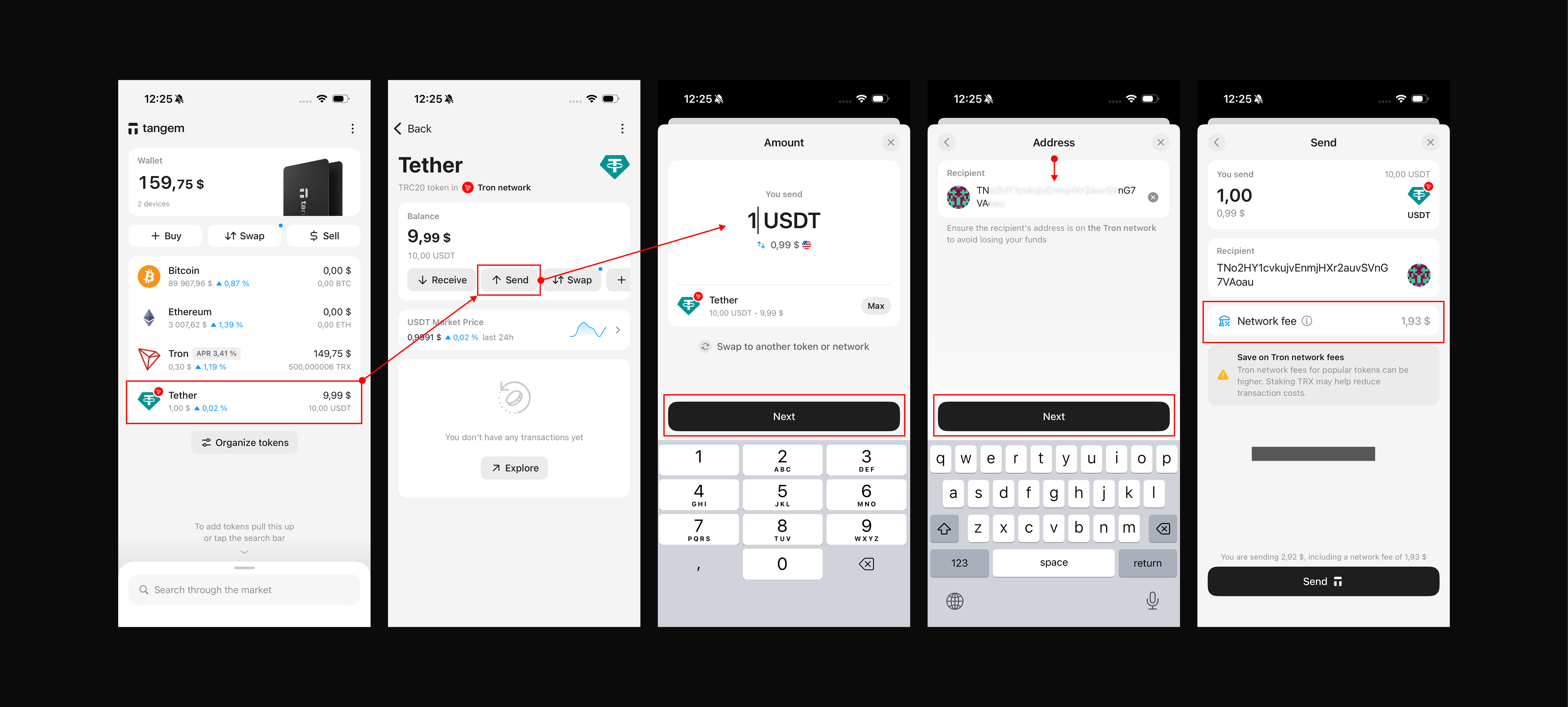 Размер комиссии на отправку USDT в кошельке Тангем