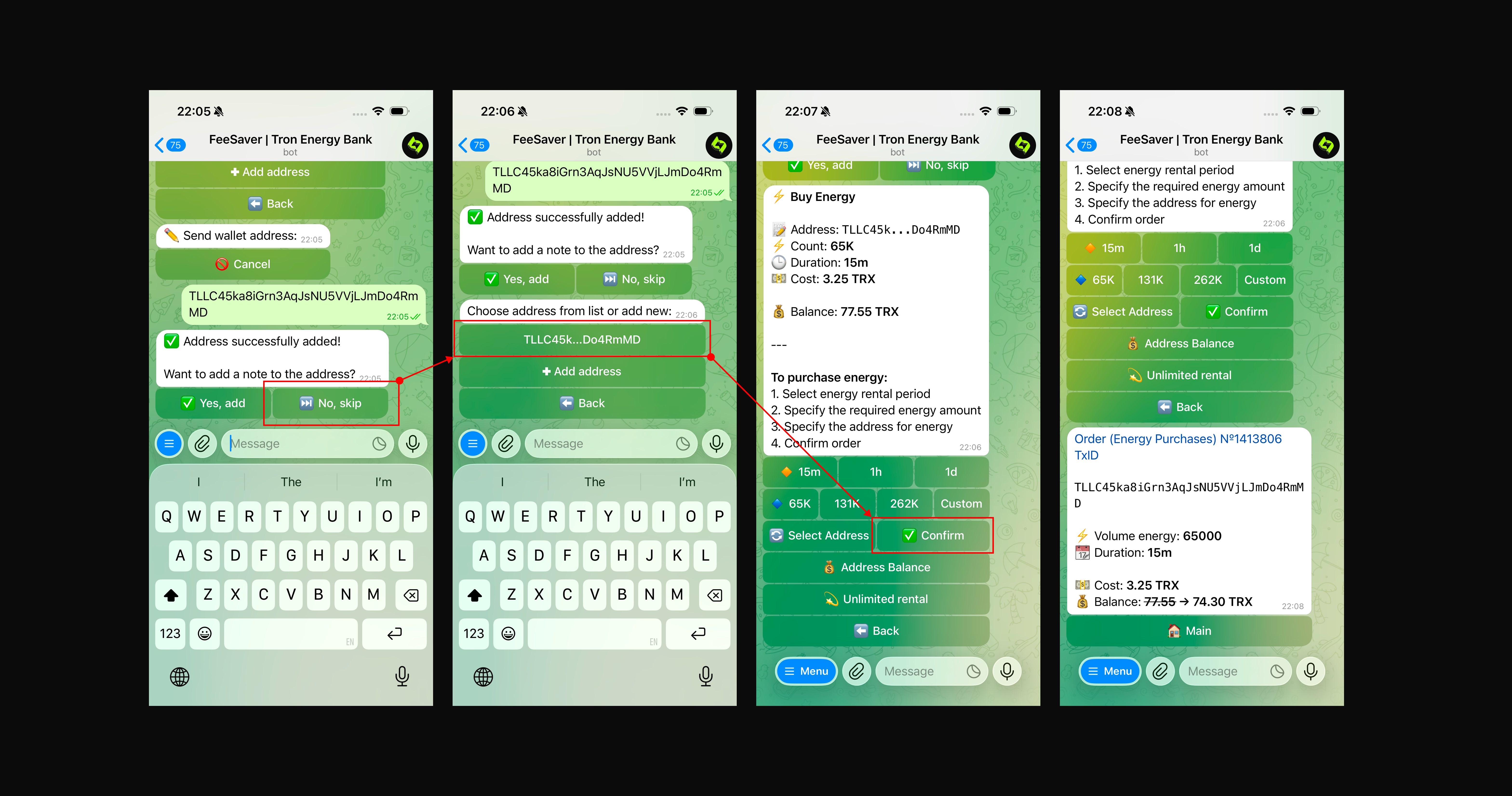 Добавление адреса в боте