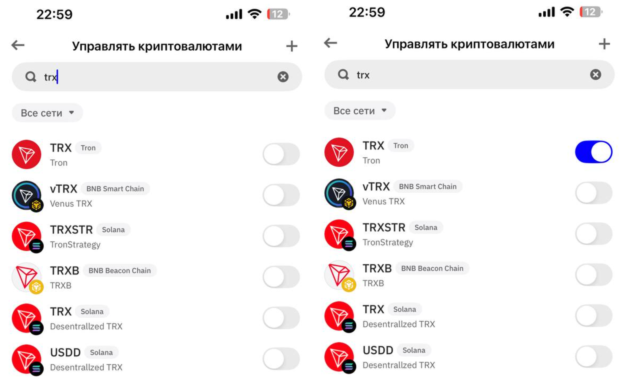 - In addition to USDT, it is also useful to display TRX in the same way, since you will have to interact with it during operations on the TRON network.