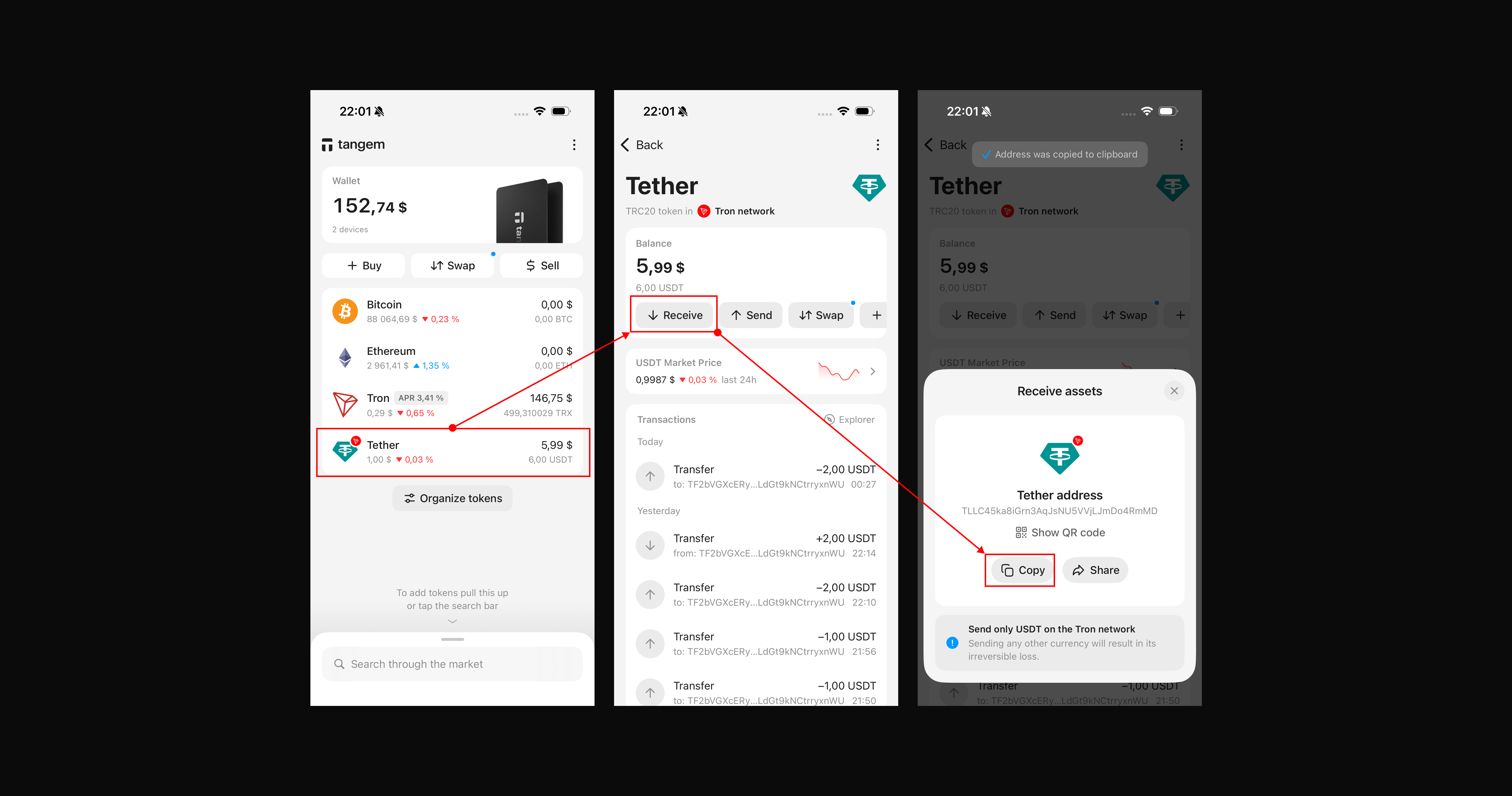 If you want to send a USDT transaction from the Tangem wallet, then without energy you will pay a fee of about $1.93. This is a network fee that is paid by burning TRX.